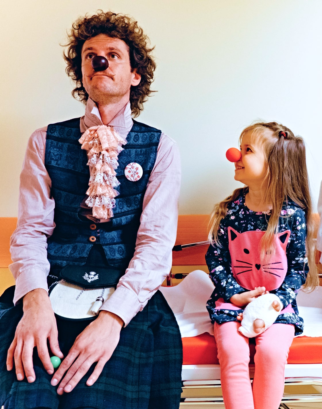 Slimnīcas klaunāde ir īpašs mākslas terapijas veids, kurā dakteri klauni, izmantojot spēli, humoru un improvizāciju, palīdz mazajiem pacientiem pārvarēt sarežģītus brīžus un justies labāk.